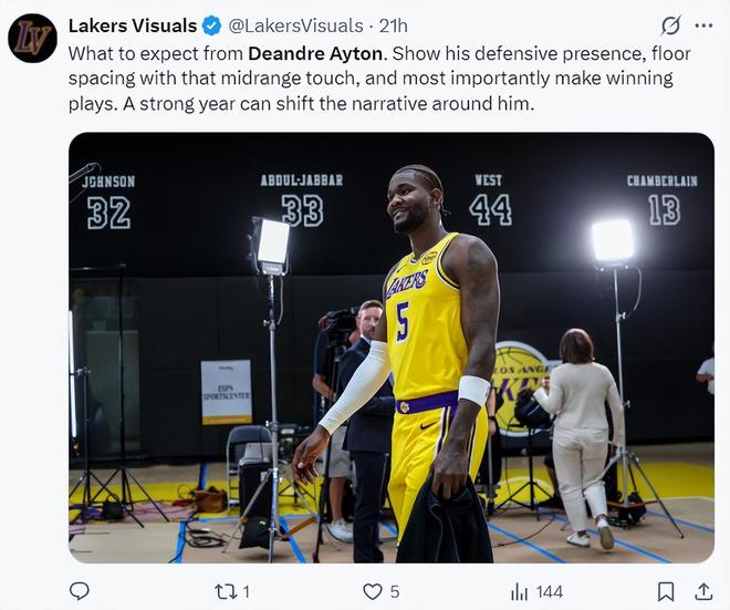 湖媒:对于艾顿的期待,展现他的防守能力、拉开空间的能力、以及出神入化的中投技巧,更重要的是打出关键得分与助攻。如果他能有一个出色的表现年,那么他的身价会得到提升。【这简直就是奢求】